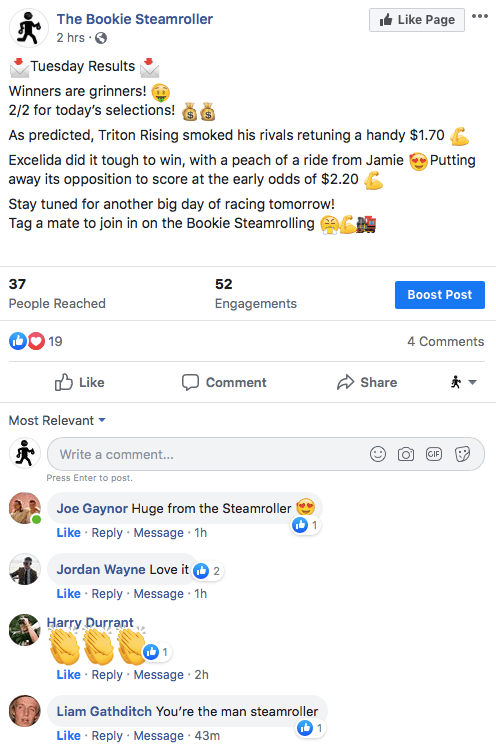 Following the recent start up of my tipping page, I am pleased to announce I am over the moon with the progress of the page thus far! The page has grown, and it is clear people are impressed with my knowledge. Having acquired knowledge of what works for sports marketing, I have used some of the techniques seen in previous posts.